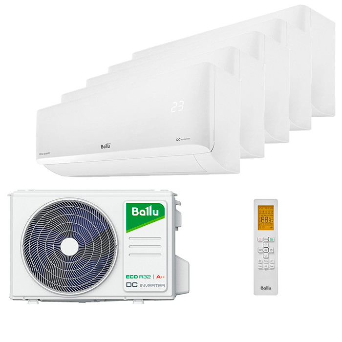 Мульти сплит система Ballu на 5 комнат (25+25+25+25+25 кв.м) серия Multi Smart - новинка среди бренда Ballu, с тихими внутренними блоками. Во внутренних блоках предусмотрен USB разъем для подключения wifi модуля, а также дополнительный каталитический фильтр тонкой очистки. Данная модель комбинируется с наружными блоками на R32 фреоне из линейки с завода Midea Multi Smart.